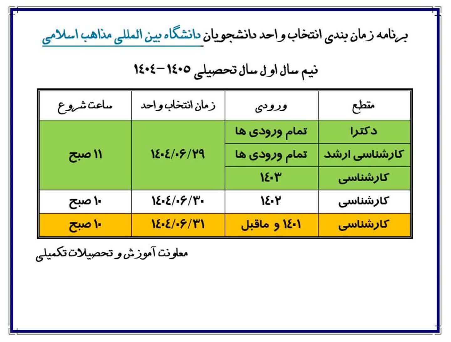 برنامه زمان بندی انتخاب واحد نیمسال اول سال تحصیلی ۱۴۰۴-۱۴۰۵ ۲۹ شهریور ۱۴۰۴ | ۱۴:۲۴ کد : ۵۹۴ اخبار و رویدادها تازه ترین اخبار تهران و شعب ارسال به دیگران نام شما ایمیل شما ایمیل دریافتکننده ارسال انصراف تعداد بازدید:۲۱۱