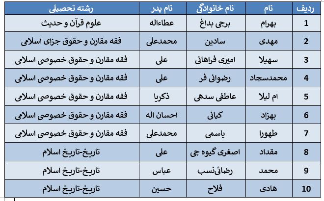 اعلام اسامی پذیرفته شدگان نهایی مقطع کارشناسی ارشد ۱۴۰۴ (اختصاصی طلاب)